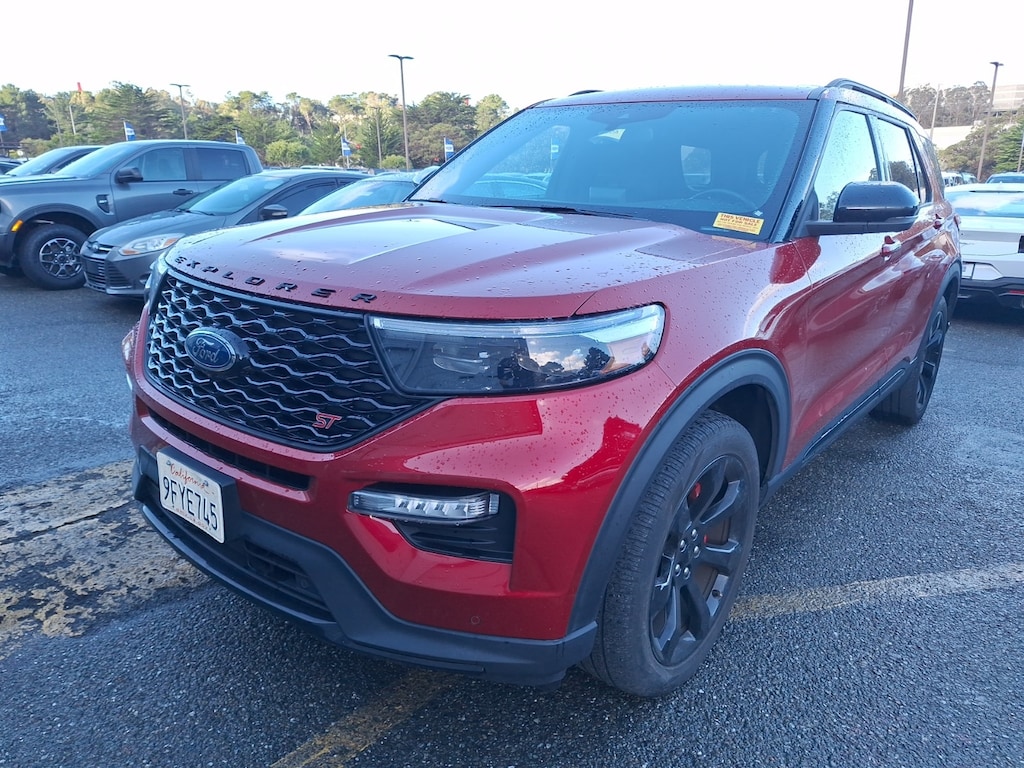 Recent Arrival! Certified. ***HEATED/ COOLED LEATHER SEATS***, ***BACKUP CAMERA & BLUETOOTH***, ***FRONT AND REAR PARK ASSIST***, ***PRE-COLLISION SYSTEM***, ***LANE-KEEPING SYS./ALERT***, ***POWER FRONT SEATS W/ MEMORY***, ***POWER LOCKS, WINDOWS, MIRRORS***, ***SIRIUSXM SATELLITE***, ***BLIND SPOT MONITOR***, ***ONE OWNER***, ***10.1" TOUCHSCREEN NAVIGATION SYSTEM***, ***TWIN PANEL MOONROOF***, ***3RD ROW PWR. FOLD SEATS***, ***360 DEGREE CAMERA***, ***PREMIUM AUDIO BY B&O W/14 SPKR.***, **PERFORMANCE FORNT & REAR BRAKES**, **110V/150W PWR. OUTLET**, **2ND ROW HEATED SEATS**, **WIRELESS PHONE CHARGING**, **EVASIVE STEERING ASSIST**, **HEADLAMPS-AUTO LED W/LED SIGNATURE LIGHTING**, Explorer ST, 3.0L EcoBoost V6, 4WD, Ebony w/Leather Heated/Ventilated Captain's Chairs. CARFAX One-Owner. Rapid Red Metallic Tinted Clearcoat 2023 Ford Explorer ST 4WD 10-Speed Automatic 3.0L EcoBoost V6