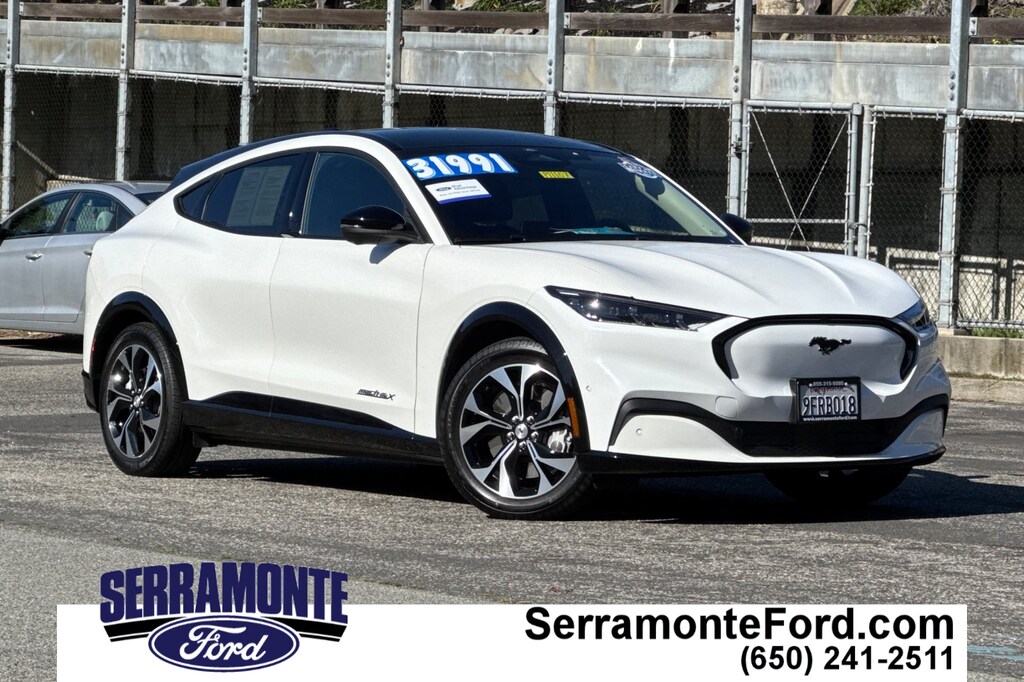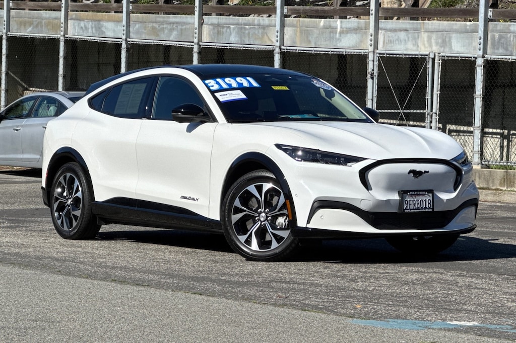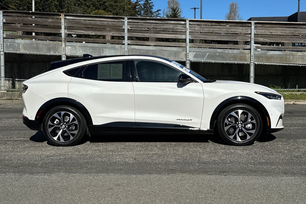 Recent Arrival! Certified. New Price! ***BALANCE OF FACTORY WARRANTY***, ***BACKUP CAMERA & BLUETOOTH***, ***FRONT AND REAR PARK ASSIST***, ***LANE-KEEPING SYS./ALERT***, ***POWER FRONT SEATS W/ MEMORY***, ***POWER LOCKS, WINDOWS, MIRRORS***, ***BLIND SPOT MONITOR***, ***SIRIUSXM***, ***ONE OWNER***, ***HEATED ACTIVEX SEATS***, ***15.5" TOUCHSCREEN NAVIGATION SYSTEM***, ***360 DEGREE CAMERA***, ***PREMIUM AUDIO BY B&O W/10 SPKR.***, ** PANORAMIC FIXED-GLASS ROOF**, ** WIRELESS CHARGING PAD**, ** PHONE AS A KEY**, ** BLUECRUISE 1.2**, **HEADLAMPS-AUTO LED W/SIGNATURE LED LIGHTING**, Mustang Mach-E Premium, AWD, Black Onyx w/Heated Perforated ActiveX Bucket Seats. Odometer is 15998 miles below market average! CARFAX One-Owner. 97/85 City/Highway MPG Star White Metallic Tri-Coat 2023 Ford Mustang Mach-E Premium AWD Single-Speed Automatic Electric Motor