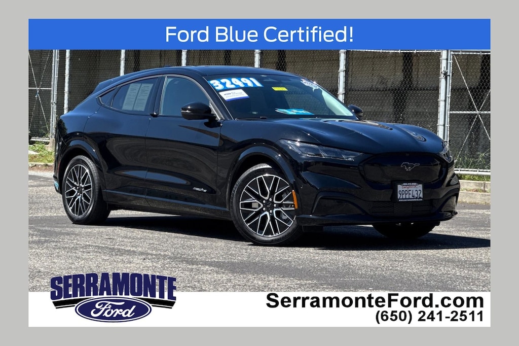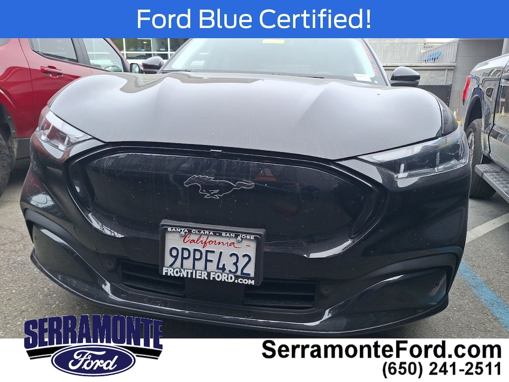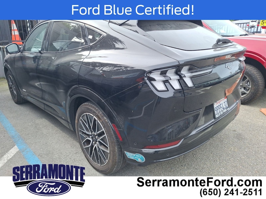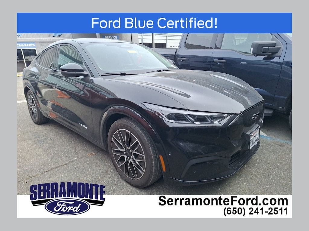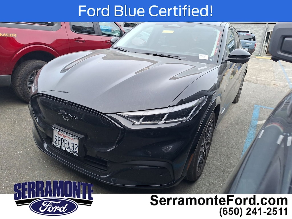 Designed for drivers who crave innovation and dynamic handling, this Mach-E delivers instant torque from its electric motor, propelling you with smooth, responsive acceleration. The rear-wheel-drive setup enhances agility, while performance tires front and rear ensure confident cornering and grip. Inside, premium synthetic bucket seats with heated front cushions and adjustable lumbar support provide comfort tailored to your drive, complemented by seat memory for personalized convenience. Advanced driver-assist technologies like adaptive cruise control, lane keeping assist, and blind spot monitoring work seamlessly to enhance safety and reduce fatigue on long journeys. The aerial view display system offers a comprehensive perspective for precise maneuvering in tight spaces. Stay connected effortlessly with smart device integration, Bluetooth, and a premium sound system that transforms your cabin into a concert hall. Thoughtful touches such as a heated steering wheel, power-folding mirrors, and a power liftgate add everyday luxury and practicality. This Mustang Mach-E isn’t just an electric SUV—it’s a statement of forward-thinking performance and style for those ready to drive the future today.