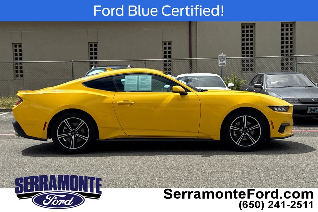Recent Arrival! Certified. New Price! Clean CARFAX. ***ONE OWNER W/CLEAN CARFAX***, ***HEATED/ COOLED LEATHER SEATS***, ***DEALER SERVICE***, ***BALANCE OF FACTORY WARRANTY***, ***BACKUP CAMERA & BLUETOOTH***, ***LANE-KEEPING SYS./ALERT***, ***POWER FRONT SEATS W/ MEMORY***, ***POWER LOCKS, WINDOWS, MIRRORS***, ***BLIND SPOT MONITOR***, ***APPLE CARPLAY & ANDROID AUTO***, ***(33,200) MILES BELOW MKT. AVG. ODO.***, ***13.2" CENTRAL TOUCHSCREEN W/12.4" DRIVER SCRN.***, ***SIRIUSXM**, **WIRELESS CHARGING PAD**, **REAR PARKING SENSORS**, **HEADLAMPS- LED W/LED SIGNATURE LIGHTING**, **FORWARD COLLISION WARNING**, Mustang EcoBoost Premium, EcoBoost 2.3L I4 GTDi DOHC Turbocharged VCT, Yellow Splash Metallic Tri-coat, Black Onyx w/ActiveX Bucket Seats. Odometer is 33591 miles below market average! CARFAX One-Owner. 22/33 City/Highway MPG Yellow Splash Metallic Tri-coat 2024 Ford Mustang EcoBoost Premium RWD 10-Speed Automatic EcoBoost 2.3L I4 GTDi DOHC Turbocharged VCT