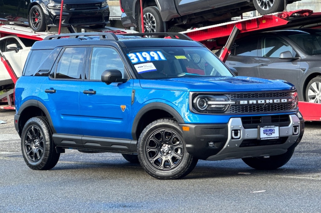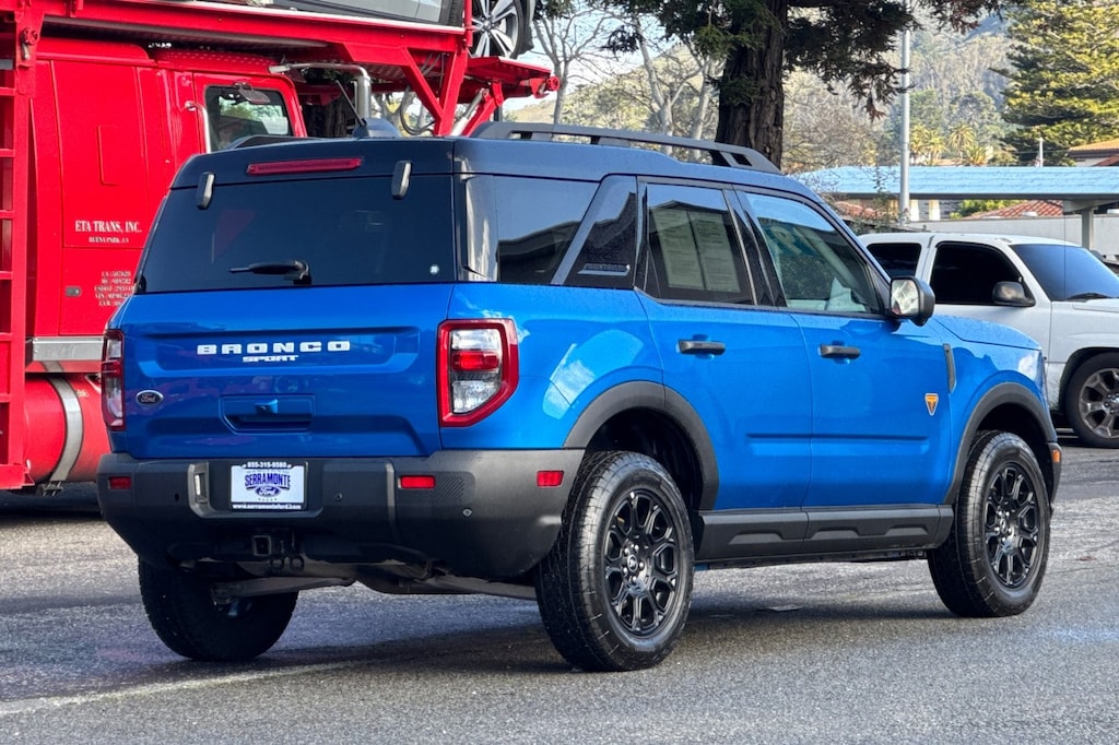 Recent Arrival! Certified. New Price! Clean CARFAX. ***BALANCE OF FACTORY WARRANTY***, ***BACKUP CAMERA & BLUETOOTH***, ***ADAPTIVE CRUISE CONTROL W/STOP & GO***, ***LANE-KEEPING SYS./ALERT***, ***POWER LOCKS, WINDOWS, MIRRORS***, ***PRIOR RENTAL***, ***BLIND SPOT MONITOR***, ***APPLE CARPLAY & ANDROID AUTO***, ***CLEAN CARFAX***, ***HEATED LEATHER SEATS***, ***13.2" TOUCHSCREEN CNCTD NAVIGATION**, ***360 DEGR. CAMERA***, ***FRONT AND REAR SENSING SYS. W/REAR BRAKE ASSIST***, ***POWER FRONT SEATS***, ***SIRIUSXM***, **EVASIVE STEERING ASSIST**, **110V/400W OUTLET**, **HEADLAMPS-AUTO LED AUTO HIGH BEAM W/LED SIGNATURE LIGHTING**, Bronco Sport Badlands, EcoBoost 2.0L I4 GTDi DOHC Turbocharged VCT, 4WD, Dark Space Gray w/Leather Trimmed Front Bucket Seats. CARFAX One-Owner. 21/27 City/Highway MPG Velocity Blue Metallic 2025 Ford Bronco Sport Badlands 4WD 8-Speed Automatic EcoBoost 2.0L I4 GTDi DOHC Turbocharged VCT