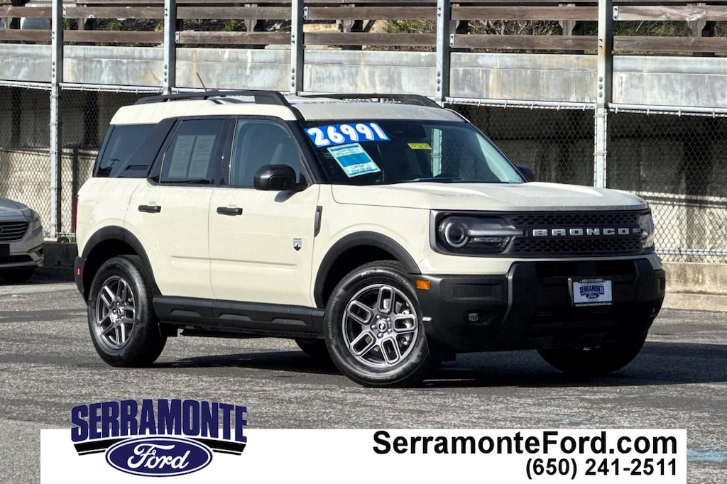 Recent Arrival! Certified. New Price! Clean CARFAX. ***BALANCE OF FACTORY WARRANTY***, ***BACKUP CAMERA & BLUETOOTH***, ***ADAPTIVE CRUISE CONTROL W/STOP & GO***, ***AUTO START STOP TECH.***, ***PRE-COLLISION SYSTEM***, ***LANE-KEEPING SYS./ALERT***, ***POWER LOCKS, WINDOWS, MIRRORS***, ***PRIOR RENTAL***, ***BLIND SPOT MONITOR***, ***CLEAN CARFAX***, ***13.2" TOUCHSCREEN CNCTD NAVIGATION SYSTEM***, ***POWER DRIVER SEAT***, ***SIRIUSXM***, **HEATED FRONT SEATS**, ** HEADLAMPS - LED AUTO HIGH BEAM**, **REAR SENSING SYS.**, **EVASIVE STEERING ASSIST**, 1.5L EcoBoost, 4WD. CARFAX One-Owner. 25/30 City/Highway MPG Desert Sand 2025 Ford Bronco Sport Big Bend 4WD 8-Speed Automatic 1.5L EcoBoost