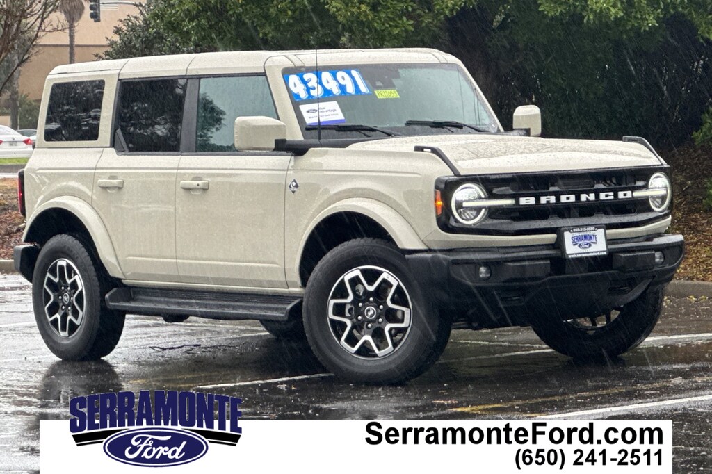 Recent Arrival! Certified. New Price! Clean CARFAX. ***BALANCE OF FACTORY WARRANTY***, ***BACKUP CAMERA & BLUETOOTH***, ***AUTO START STOP TECH.***, ***LANE-KEEPING SYS./ALERT***, ***POWER LOCKS, WINDOWS, MIRRORS***, ***PRIOR RENTAL***, ***BLIND SPOT MONITOR***, ***APPLE CARPLAY & ANDROID AUTO***, ***HEATED LEATHER SEATS***, ***CLEAN CARFAX***, ***12" TOUCHSCREEN NAVIGATION SYS.**, ***POWER FRONT SEATS***, **HARD TOP, PAINTED**, **SIRIUSXM® W/360L**, **HEADLAMPS-LED W/ LED SIGNATURE LIGHTING**, **RUNNING BOARDS**, **REAR SENSING SYS.**, Bronco Outer Banks Advanced, 2.3L EcoBoost I-4, 4WD, Desert Sand, Smoked Truffle w/Black Onyx w/Heated Leather-Trimmed/Vinyl Bucket Seats. CARFAX One-Owner. Desert Sand 2025 Ford Bronco Outer Banks 4WD 10-Speed Automatic 2.3L EcoBoost I-4