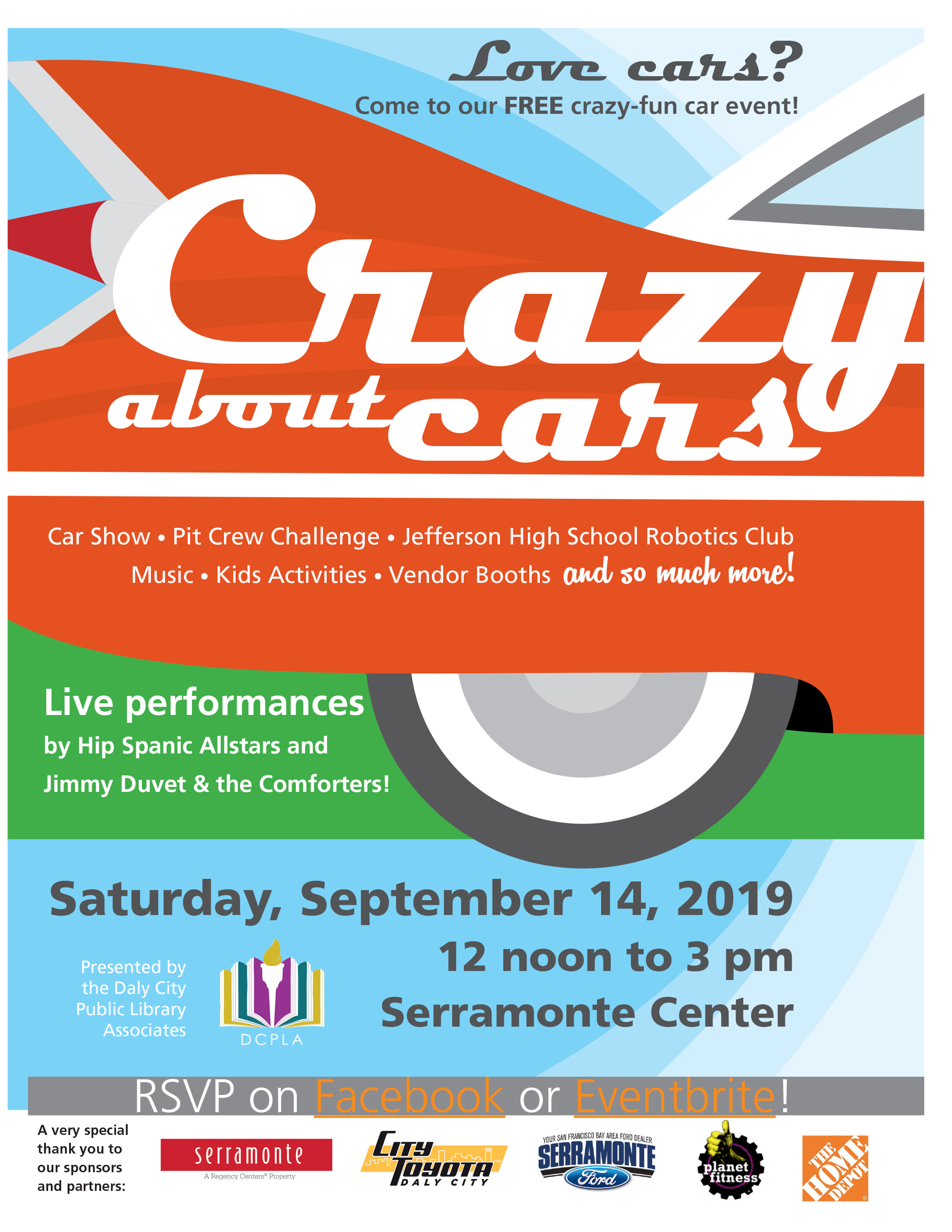 Crazy About Cars is the DCPLA's largest fund-raising event that entertains car lovers of all ages and helps raise money for new and innovative projects throughout the library association system. It features a wide number of new and classic cars, trucks, vans, motorcycles, trolleys and fire engines.Â
