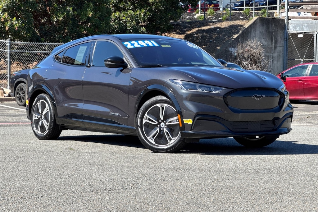 Recent Arrival! New Price! ***ONE OWNER W/CLEAN CARFAX***, ***LOCAL TRADE***, ***DEALER SERVICE***, ***BACKUP CAMERA & BLUETOOTH***, ***ADAPTIVE CRUISE CONTROL W/STOP & GO***, ***LANE-KEEPING SYS./ALERT***, ***POWER FRONT SEATS W/ MEMORY***, ***POWER LOCKS, WINDOWS, MIRRORS***, ***BLIND SPOT MONITOR***, ***HEATED ACTIVEX SEATS***, ***15.5" TOUCHSCREEN CNCTD BLT-IN NAV(3-YR INC)**, ***PANORAMIC FIXED-GLASS ROOF**, ***360 DEGREE CAMERA***, ***PREMIUM AUDIO BY B&O W/10 SPKR.***, ***REAR PARK ASSIST***, **WIRELESS CHARGING PAD**, ** PHONE AS A KEY**, **HEADLAMPS-AUTO LED W/SIGNATURE LED LIGHTING**, Mustang Mach-E Premium, Black Onyx w/Heated Perforated ActiveX Bucket Seats. CARFAX One-Owner. 104/90 City/Highway MPG Dark Matter Gray Metallic 2022 Ford Mustang Mach-E Premium RWD Single-Speed Automatic Electric Motor