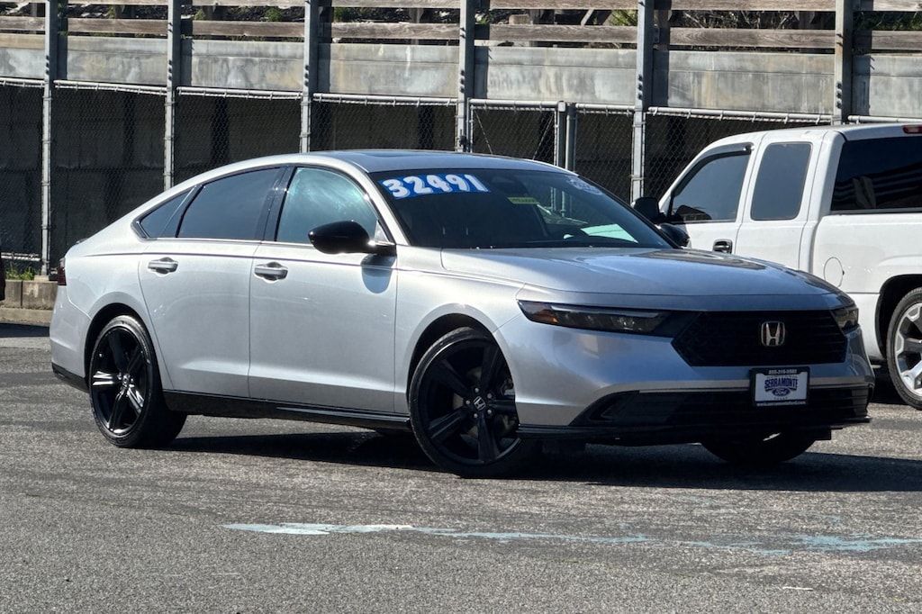 Recent Arrival! New Price! ***ONE OWNER W/CLEAN CARFAX***, ***POWER MOONROOF***, ***BALANCE OF FACTORY WARRANTY***, ***ADAPTIVE CRUISE CONTROL W/STOP & GO***, ***PRE-COLLISION SYSTEM***, ***POWER FRONT SEATS W/ MEMORY***, ***POWER LOCKS, WINDOWS, MIRRORS***, ***BLIND SPOT MONITOR***, ***APPLE CARPLAY & ANDROID AUTO***, ***HEATED LEATHER SEATS***, ***12.3" TOUCHSCREEN W/HONDALINK***, ***MULTI VIEW BACKUP CAMERA & BLUETOOTH***, ***LANE-KEEPING ALERT W/LANE-KEEP ASSIST***, **REAR TINTED GLASS**, **REAR SENSING SYS.**, **WIRELESS CHARGING PAD**, **LED HEADLIGHTS AUTO ON/OFF AUTO HIGH BEAM**, **BRAKE HOLD TECH.**, Accord Hybrid Sport-L, 2.0L I4 DOHC 16V, Black w/Leather-Trimmed Seat Trim. Odometer is 11849 miles below market average! 46/41 City/Highway MPG Solar Silver Metallic 2025 Honda Accord Hybrid Sport-L FWD eCVT 2.0L I4 DOHC 16V