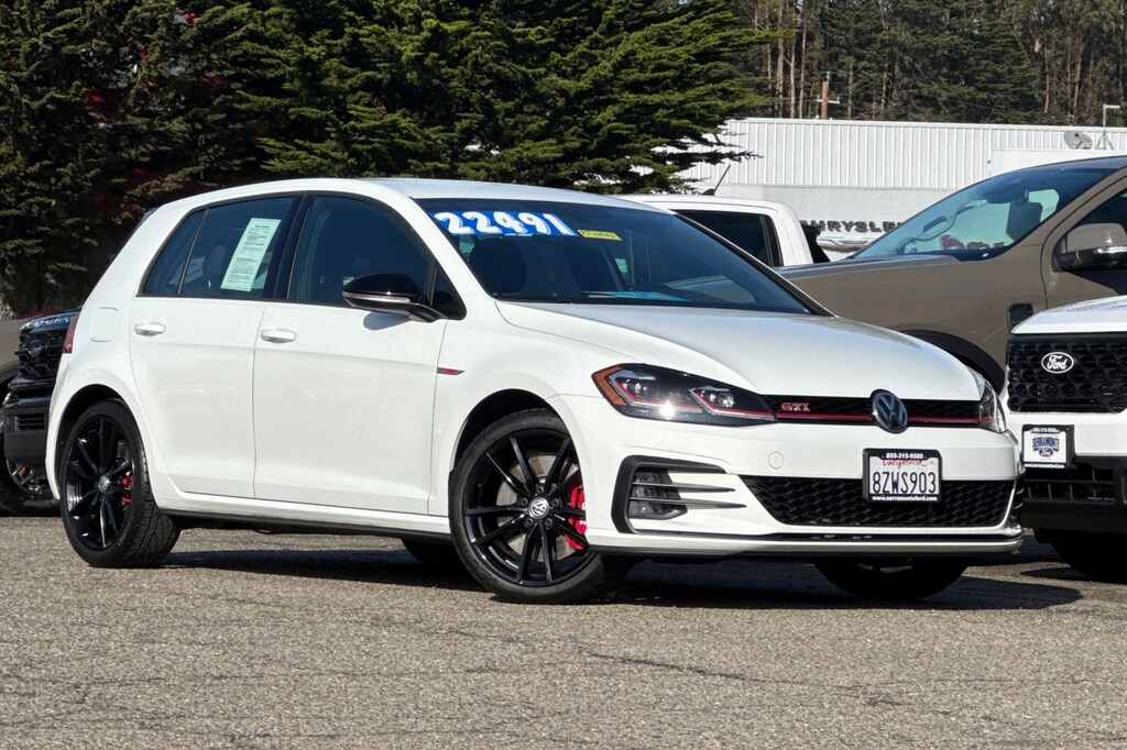 Recent Arrival! New Price! Clean CARFAX. ***DEALER SERVICE***, ***POWER LOCKS, WINDOWS, MIRRORS***, ***BLIND SPOT MONITOR***, ***(31,100) MILES BELOW MKT. AVG. ODO.***, ***CLEAN CARFAX***, ***WELL MAINTAINED W/(11) SERVICE HISTORY RECORD***, ***REAR CAMERA & BLUETOOTH***, ***PRE-COLLISION WARNING***, ***PARTIAL PWR. FRONT SEATS***, ***6.5" TOUCHSCREEN W/APPLE CARPLAY & ANDROID AUTO***, **HEATED FRONT SEATS**, **BI-XENON HEADLIGHTS**, Golf GTI 2.0T Rabbit Edition, 2.0L TSI DOHC, 6-Speed Manual, ABS brakes, Alloy wheels, Compass, Electronic Stability Control, Heated door mirrors, Heated front seats, Illuminated entry, Low tire pressure warning, Remote keyless entry, Traction control. Odometer is 31102 miles below market average! 24/32 City/Highway MPG White 2019 Volkswagen Golf GTI 2.0T Rabbit Edition FWD 6-Speed Manual 2.0L TSI DOHC